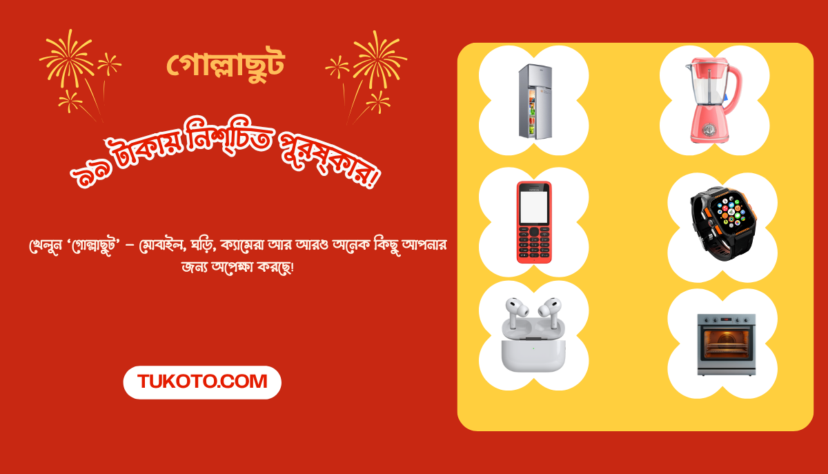 - "গোল্লাছুট" অফারটি'তে শুধুমাত্র "টুকোটো" ওয়েবসাইট /মোবাইল Apps-এর মাধ্যমেই অংশগ্রহন করতে পারবেন।
